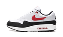 The Chili 2.0 Nike Air Max 1 features a white mesh upper to provide breathability, adorned with a scarlet Swoosh logo that is reinforced by synthetic suede overlays in a subtle Pale Gray shade. Complementary black accents are found on the mudguard and the interior lining crafted from textiles. The midsole, made of lightweight white polyurethane and adopting the classic wedge design, delivers comfortable cushioning. It is further enhanced with a Max Air unit in the heel, featuring a touch of red for added visual intrigue. The iconic Swoosh logo is featured on both sides of the shoe, while the Nike Air Max branding can be found on the tongue tag, heel, and on the insole.